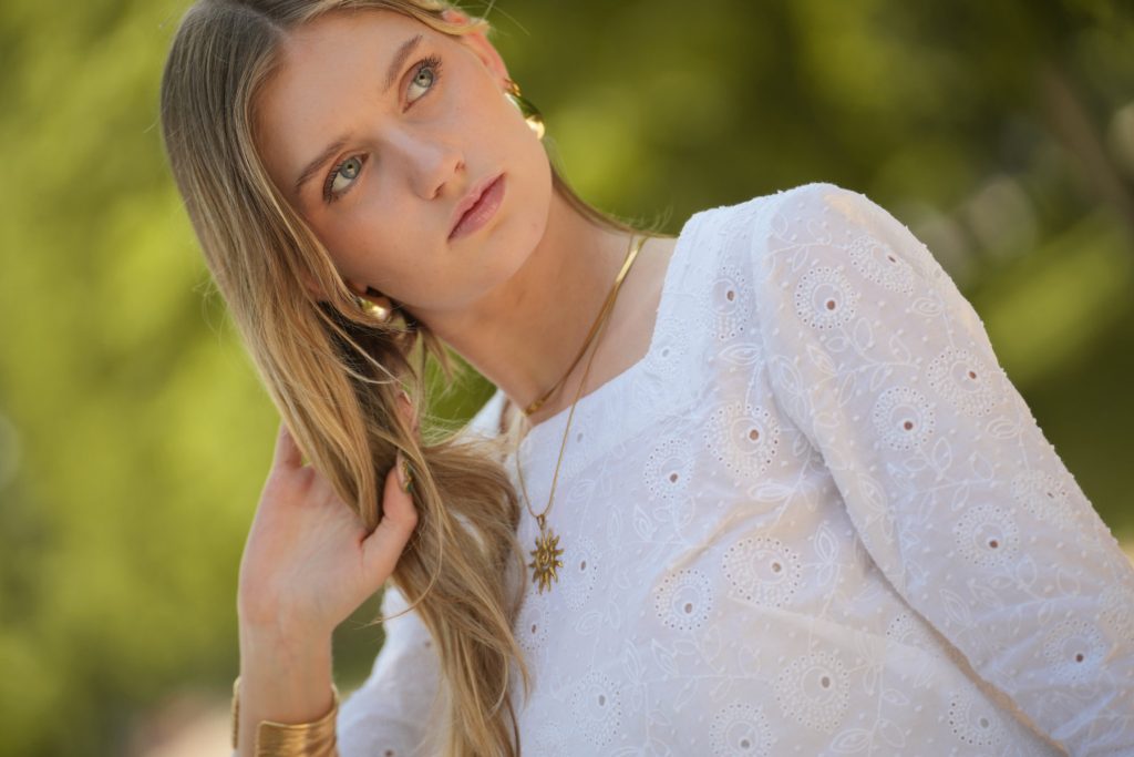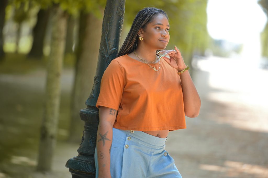 → Version B sans pinces (mailles) : Le t-shirt parfait pour un look décontracté chic.