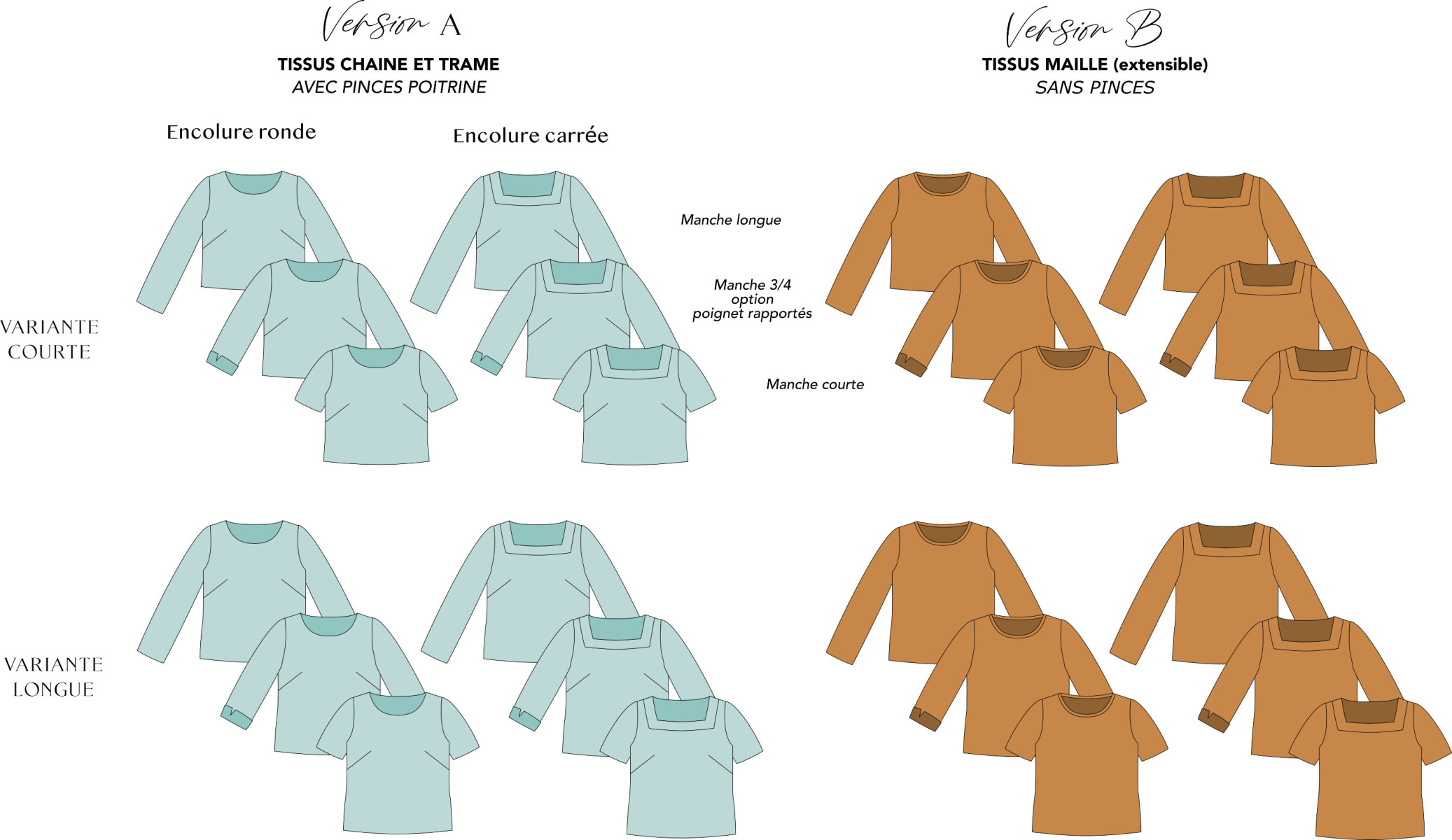 ✔ Avec toutes ces versions/variantes/options, créez des blouses et des t-shirts avec des finitions soignées, des pièces qui durent et qui ne restent pas dans le placard.