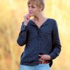ZYA est une blouse semi-ajustée, manche kimono, silhouette « chauve-souris ». Dotée de fines pinces poitrine, elle présente une ampleur confortable et convient à toutes les morphologies.